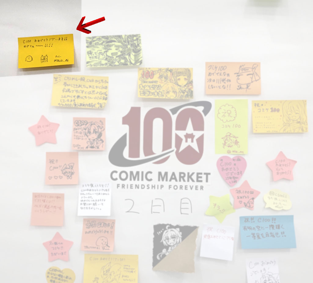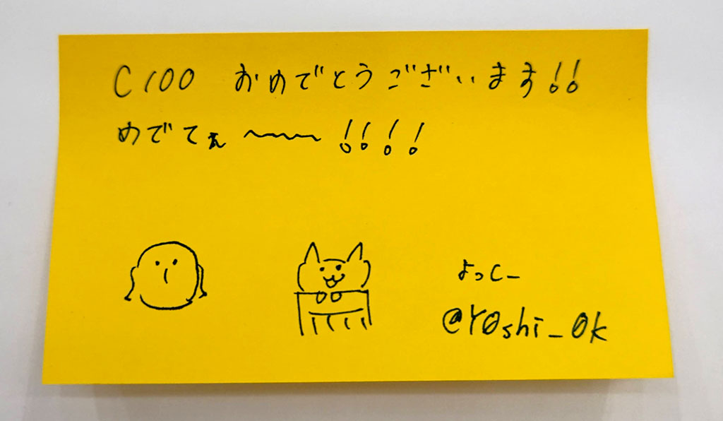 今回C100企画ということで、メッセージカードを貼れるコーナーが